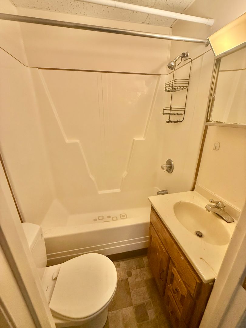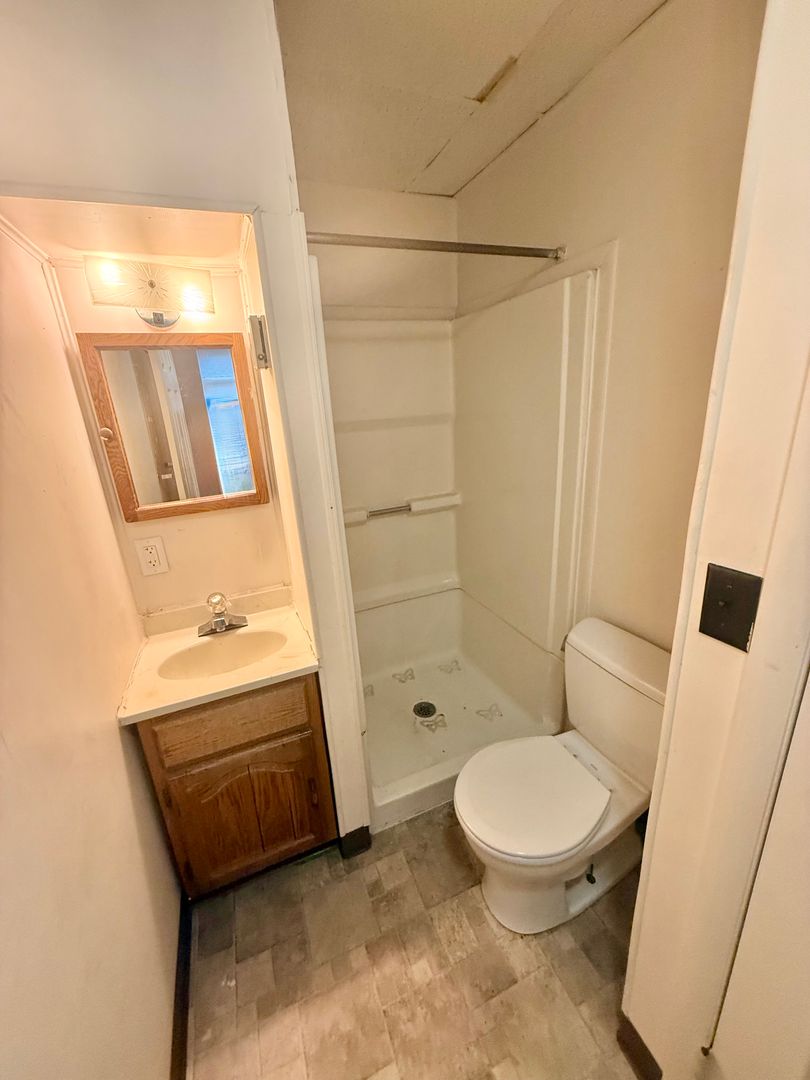 1 bedroom, 2 bathroom 2nd Floor apartment. Water, sewer and trash included. Tenant pays electric. Laundry in building. Cat friendly! No dogs please.
